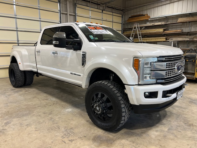 2017 Ford F450 Platinum Dually- No expense spared here, this beautiful 1-Owner PLATINUM F-450 must be seen to appreciate!!! Garage kept and well taken care of, this beaty comes loaded out on 22" powder coated American Force wheels, 37" TOYO RTS tires with 80% tread left, , 4" suspension lift w/ FOX shocks front and rear with front reservoirs, rear air bags w/ on board air compressor w/ gauge and controller, Weather Guard toolbox chest w/45 gallon transfer tank w/ GPI pump, 4WheelParts installed 4.88 gears front and rear, and so much more!! SO many more upgrades that this list will go ON & ON!!!!! No check engine light, no leaks, and no BS! This stud could go to SEMA but instead it could be yours! Hurry and call Jason today!!!