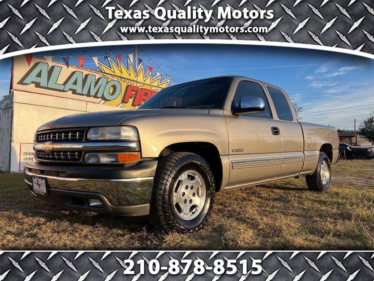 2001 Chevy 1500 access cab 2WD V8- Super super clean 2-owner Chevy with no accidents per Carfax and not smoked in. A fresh trade in here at Texas Quality Motors, this beauty spent most of it's life out in CA before being sold here in South Texas about 2 years ago. It has ZERO rust and ZERO issues, everything works as it should. Comes on almost new tires on factory alloy heels, tow pkg w/ hitch, power drivers seat and power windows and locks, cold A/C and hot heat, smooth 5.3L V8 and transmission, and much more. These are getting harder to find and you will almost never come across one in this condition. Won't last long so hurry and call Jason today!!!