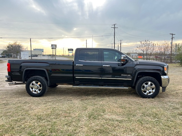 2015 GMC 2500 SLT 4x4 Crew Cab Long Bed 6.0L- Fully loaded SLT GMC, this beauty comes with a clean Carfax, was not smoked in, and is ready for work or play!!! Loaded out on chrome factory alloys on GoodYear A/T tires in great shape, factory tow pkg with back up camera, Navigation, leather seats with full power and heat w/a/c, sunroof, factory steps, spray in bed liner, hands free BT, pwr windows and locks, and much more. Very nice truck and won't last long so hurry and call Jason today!!!
